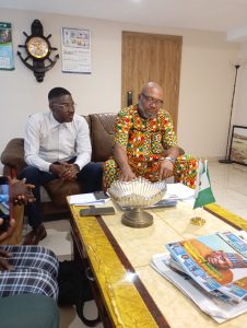 President General,MWUN,Comrade Francis Bunu Abi(L), President Maritime Journalists’ Association of Nigeria MAJAN Mr.Jerry Agugbo, during a courtesy visit of the MAJAN EXC to the Maritime Workers Union of Nigeria MWUN ,on Thursday, August,8,2025