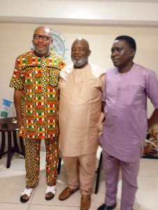 L-R General Secretary,MWUN,Comrade Oniha Erazua, President General MWUN,comrade Francis Bunu Abi and President,MAJAN,Mr.Jerry Agugbo,on the occasion of courtesy visit by MAJAN to the MWUN on Thursday