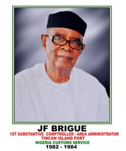 Comptroller J F. Brigue’s life is a remarkable blend of public service, continuous learning, and unwavering faith, leaving a lasting legacy in both the customs service and his Comptroller Brigue ( Rtd), was the first Substantive Customs Area Administrator,Tin Can port Command,NCS.