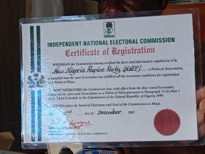 ” I am the founder of the NNPP.This party was dully registered in 2002,and Senator Kwakwanso joined in 2022.From that time to the time that Senator Kwakwanso joined the party is about twenty two(22 yrs) years.This is the original Certificate of the NNPP.