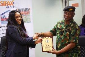 During a courtesy visit to SIFAX Group’s management, the Flag Officer Commanding (FOC) of the Western Naval Command, Rear Admiral Michael Gregory Oamen, expressed appreciation for SIFAX Group’s unwavering support to the Navy. He emphasized the critical role of collaboration between the military and private sector stakeholders in maintaining a secure and thriving maritime industry.